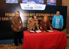Bandung, Sebelas12 – PT. Bank Pembangunan Daerah Jawa Barat & Banten, Tbk (bank bjb) menyepakati kerja sama bisnis dengan PT. Asurasi Jasa Indonesia (Jasindo) untuk memasarkan produk-produk perbankan unggulan yang dikeluarkan perseroan. Kerja sama tersebut ditandai dengan penandatanganan Nota Kesepahaman (MoU) antara kedua belah pihak di Hotel Fairmont Jakarta, Jalan Asia Afrika, Jakarta Pusat pada Rabu (9/10/2019).