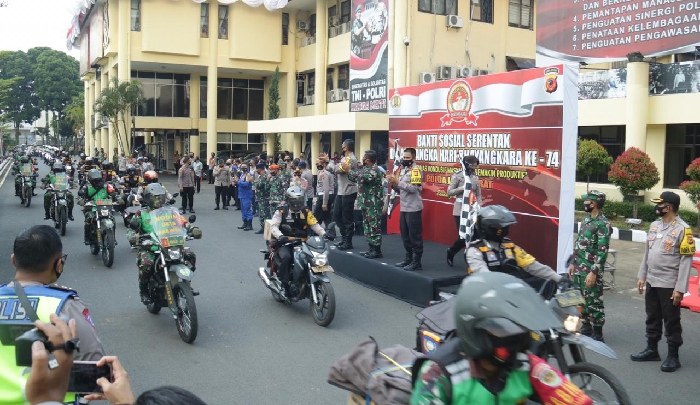 Kapolri Jenderal Pol. Drs. Idham Azis, M.Si. dalam sambutannya yang dibacakan oleh Kapolda Jabar Irjen Pol. Drs. Rudy Sufahriadi mengatakan bahwa baksos serentak yang dilaksanakan ini adalah salah satu wujud nyata kepedulian Polri terhadap masyarakat yang terdampak langsung dari pandemi Covid-19.