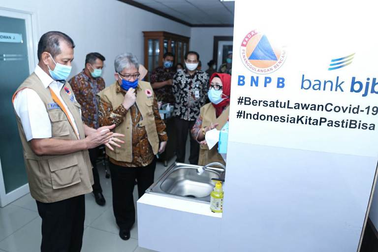 bank bjb sebagai agen perubahan nasional kembali menunjukkan perannya dalam membantu pemerintah menanggulangi penyakit yang hingga kini telah menjangkit jutaan orang di dunia ini. Bertempat di Gedung Badan Nasional Penanggulangan Bencana (BNPB), Selasa (14/7/2020), bank bjb menyerahkan sejumlah paket bantuan kepada Gugus Tugas Percepatan Penanganan COVID-19.