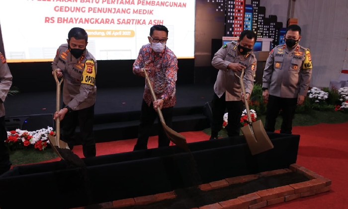 Bandung, sebelas12.com – Gubernur Jawa Barat, M. Ridwan Kamil bersama Kapolda Jawa Barat Irjen Pol Ahmad Dofiri, meresmikan gedung pelayanan Medik sekaligus peletakan Batu pertama pembangunan penunjang Medik RS Bhayangkara Sartika Asih Kota Bandung, Selasa (6/4/2021).