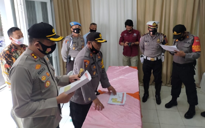 Tasikmalaya, sebelas12.com – Kapolres Tasikmalaya Polda Jabar, AKBP Hendria Lesmana S.Ik, M.Si, pimpin apel kesiapan dalam rangka pengamanan pendaftaran Calon Bupati (Cabup) dan Calon Wakil Bupati (Cawabup) Kabupaten Tasikmalaya Tahun 2020 dengan mematuhi protokol kesehatan (prokes), bertempat di Kantor KPU Kab Tasikmalaya Ruko Blok 7-10 Singaparna, Jl. Raya Timur Desa Cipakat Kec Singaparna Kab Tasikmalaya, Sabtu (5/9/2020).