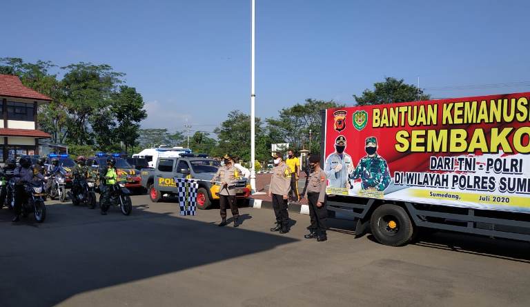 Sumedang, sebelas12.com – Polres Sumedang Polda Jabar menyerahkan bantuan kemanusiaan sembako dari TNI-Polri untuk masyarakat terdampak Covid-19, bertempat di Halaman Mako Polres Sumedang Jl. Prabu Gajah Agung No.07 Kel.Situ Kec. Sumedang Utara Kab. Sumedang, Jum’at (17/7/2020).