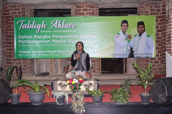 “Insya Alloh dengan adanya bantuan dari H. Dadan ini, pembangunan Masjid Nurul Haq yang dibangun diatas lahan sekitar 200 M2 akan segera selesai,” kata H Yuyus.